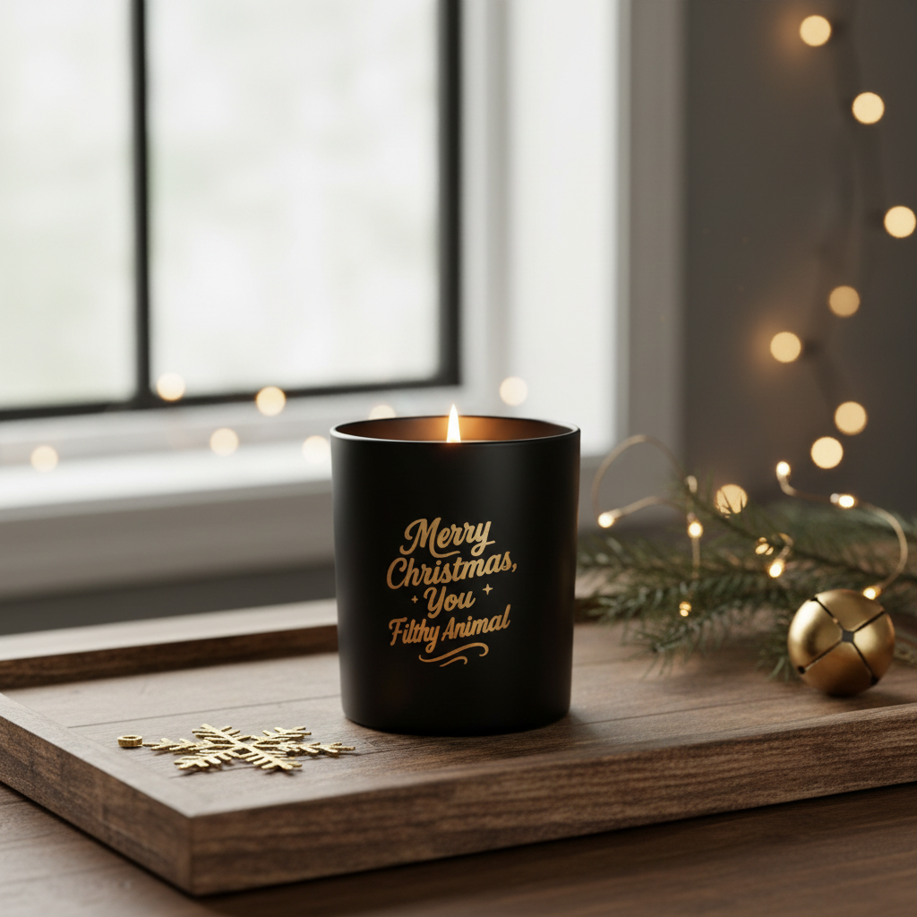 Hand-poured in small batches using natural soy wax, this candle is made for the side of Christmas no one admits to — the sarcasm, the eye rolls, and the strategic early exits.
